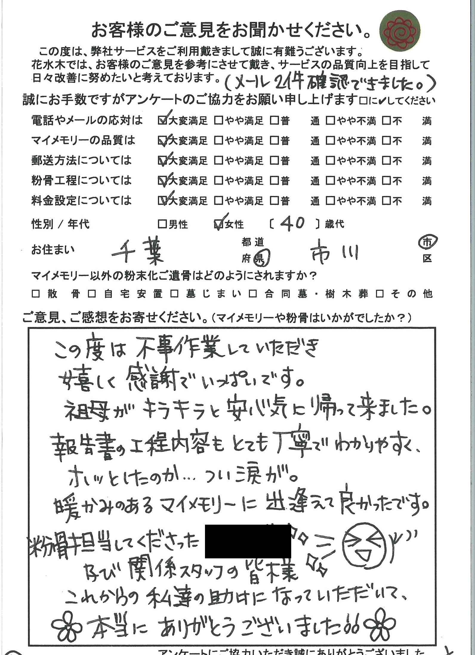 粉骨担当してくださった○○様及び関係スタッフの皆様。